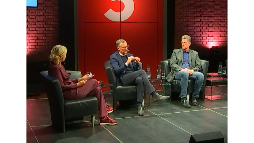Bei der Plenumsdiskussion. V. l.: ORF Moderatorin Barbra Kohla, Univ.- Prof. Dr. Dominik Wolf, ORF Tirol Journalist Robert Schuler.