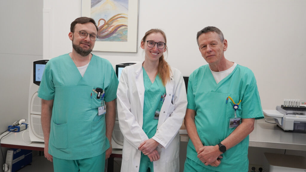 OA Marco Amato (Leitung Blutprodukteherstellung und designierter Leiter der Blutbank Innsbruck, Pharmazeutin Anita Siller (Leitung Qualitätssicherung Blutbank Innsbruck) und Primar Harald Schennach.